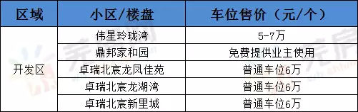 由上面的数据可以看出,区域内部的价格虽比较统一,但受楼盘定位、地理位置等多种因素的影响,仍存在有楼盘车位价格略高于周边的情况。其中,有部分热门楼盘如华强赛纳丽城、华强颐景湾畔的车位暂未出售,有如白金湾、伟星金域蓝湾车位分区定价,有如伟星长江之歌买房送车位,也有如开发区鼎邦家和园所有车位暂不收费,免费提供业主使用。