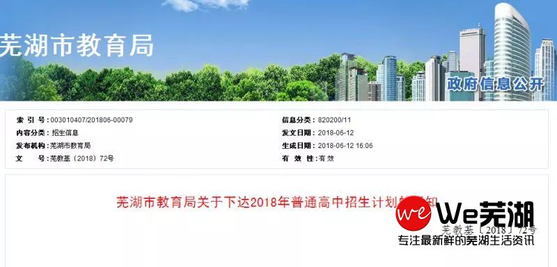 2018芜湖市区及四县普通高中录取控制分数线出炉!附最新招生计划…