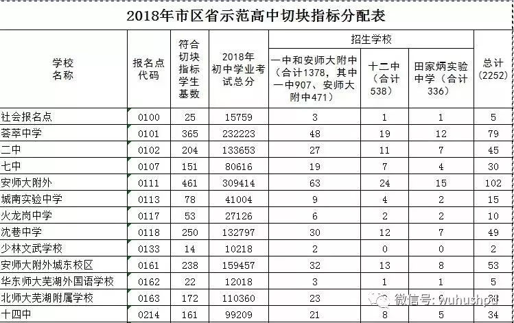 2018年芜湖市区省示范高中切块指标分配方案出炉