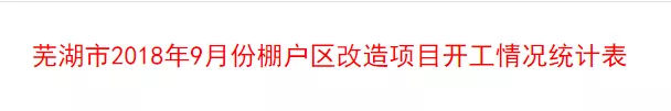 近日,芜湖市鸠江区人民政府(办公室)发布了芜湖市2018年9月份棚户区改造项目开工情况统计表,芜湖市各区棚户区改造目标任务全已开工,开工率破百。