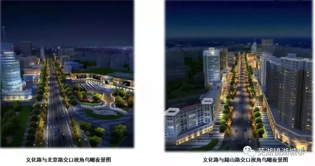 ▲文化路(北京路—赭山路)鸟瞰夜景图