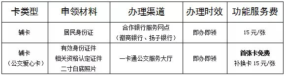 可在芜湖市区内的徽商银行、扬子银行网点进行申领(网点门口悬挂“芜湖城市一卡通服务网点”标牌,以下简称“合作银行服务网点”),卡片收取15元/张的功能服务费。